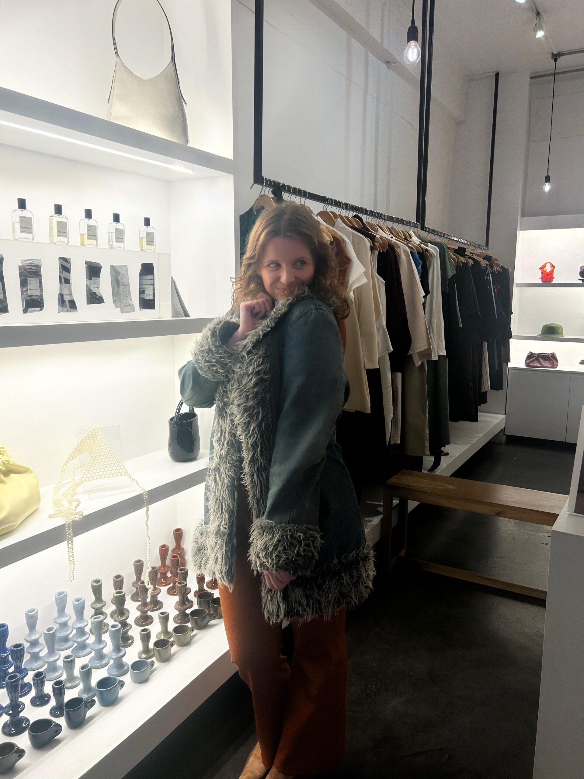 In fact, I really was. After that summer, I decided to turn my love of vintage clothing into something more permanent by offering my time and hands to some of Cape Town’s most beloved vintage institutions. Asseblief Vintage plucked me from the dust and restored my lost sparkle, just as its owner, Chris Wagner, does with each piece that passes through his hands. Chris has a gift for unearthing the stories stitched into every garment and carefully recording fragments of their past lives on the price tags. At Asseblief Vintage, I learned that beauty often lies in unusual proportions, and that clothes—like people—carry histories worth preserving. Its magic keeps me warm like the soft ’90s Afghan Coat I’ve made into a character preset outfit of mine due to the frequency of its wear, and keeps me forever covered in ’70s glamour glitter.