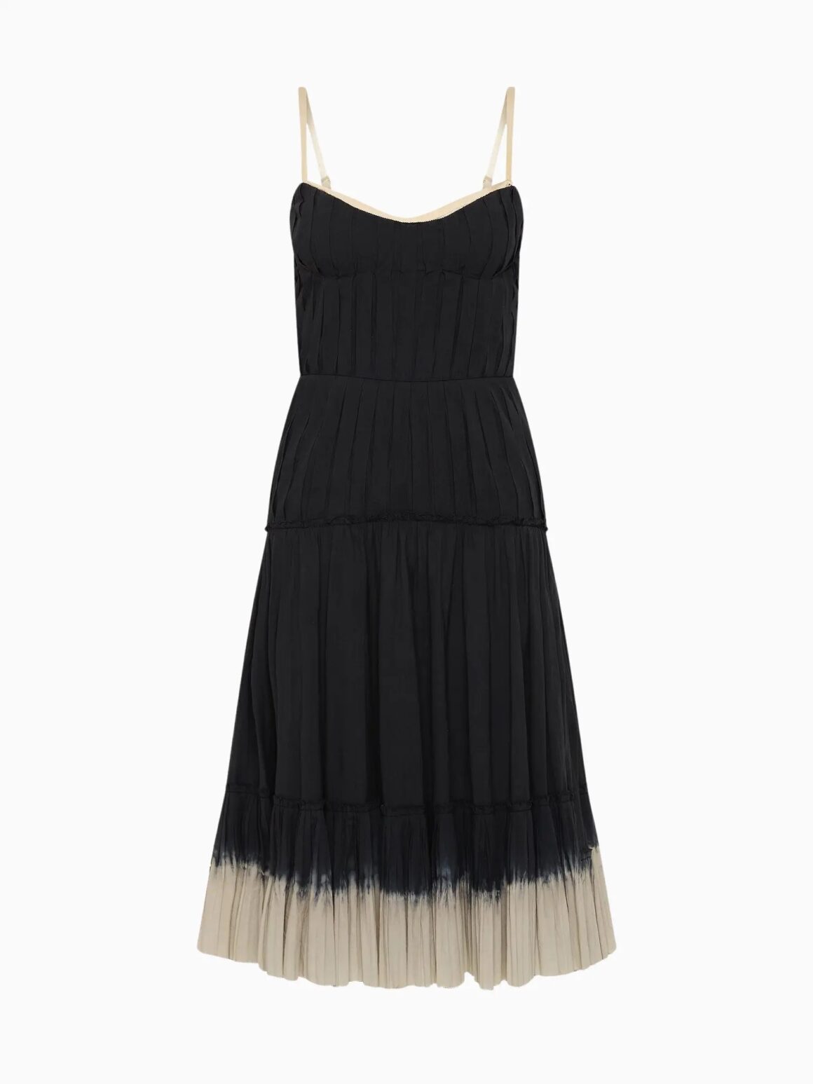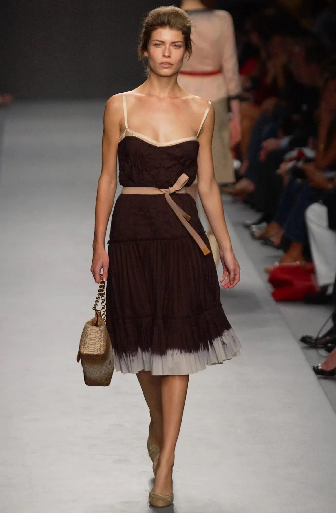 Miuccia Prada once described this collection as being all about tourism and craftsmanship. What made the collection memorable were its understated imperfections — delicate dip-dye and tie-dye treatments that gave each piece a sense of individuality. This black, A-line silhouette combines femininity with a touch of rebellion in its dip-dye edges. Whether you’re White Lotus-ing it as a tourist or not, this archival piece is a must.