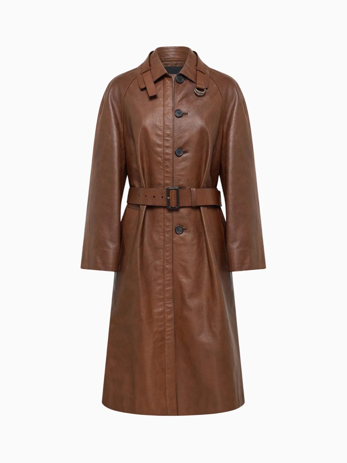 There’s something about a trench coat that is pure function and fantasy all at once. Whether worn as a protective piece from the weather, as a very stylish layer, or as a single piece of clothing, the trench coat has many personalities. Miuccia Prada wanted to prove once and for all that she could bring sexy back with this collection. This rich brown leather trench coat is proof. Just look at Karolina Kurková on the runway.