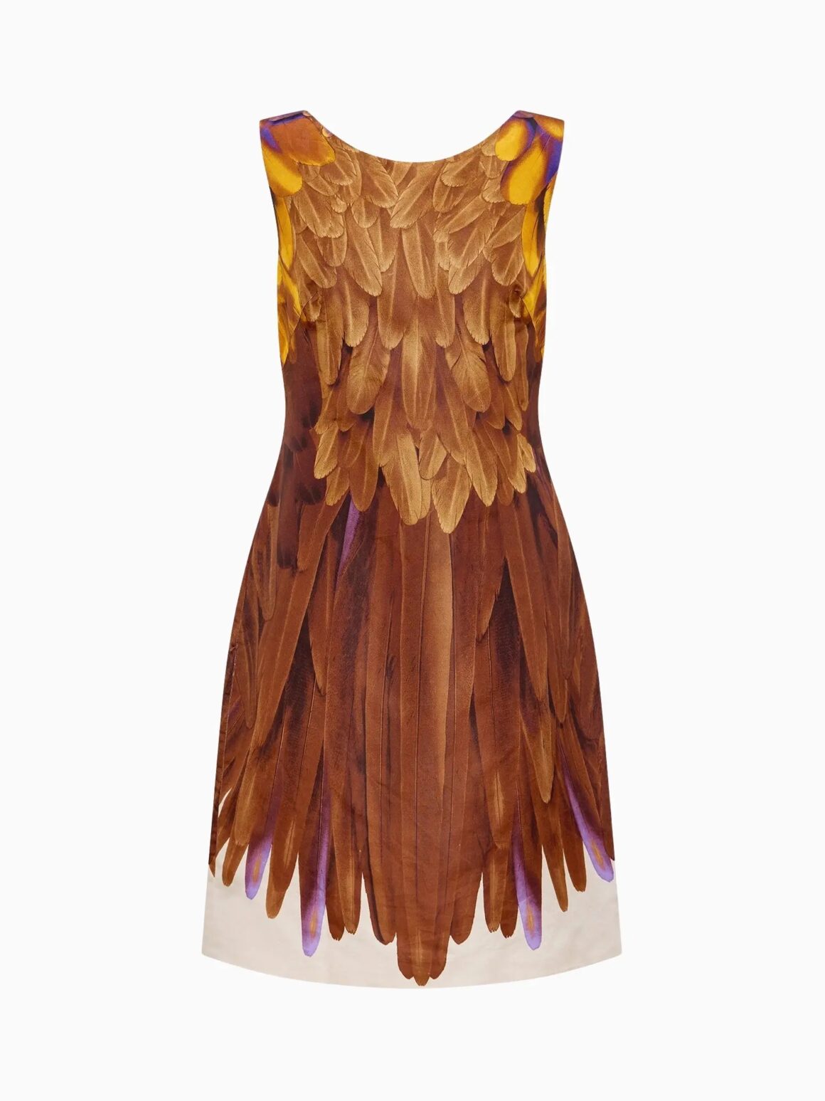 The idea of this collection started with “A vague idea of birds; birds of vanity, like peacocks, parrots, and swans …something more young and sporty, tall and narrow,” Miuccia Prada once expressed. And so it goes with this gorgeous silk dress and its beautiful feather print. The form-fitting silhouette is daring yet elegant in its design. Not a vanity piece, but a rare bird, for sure.