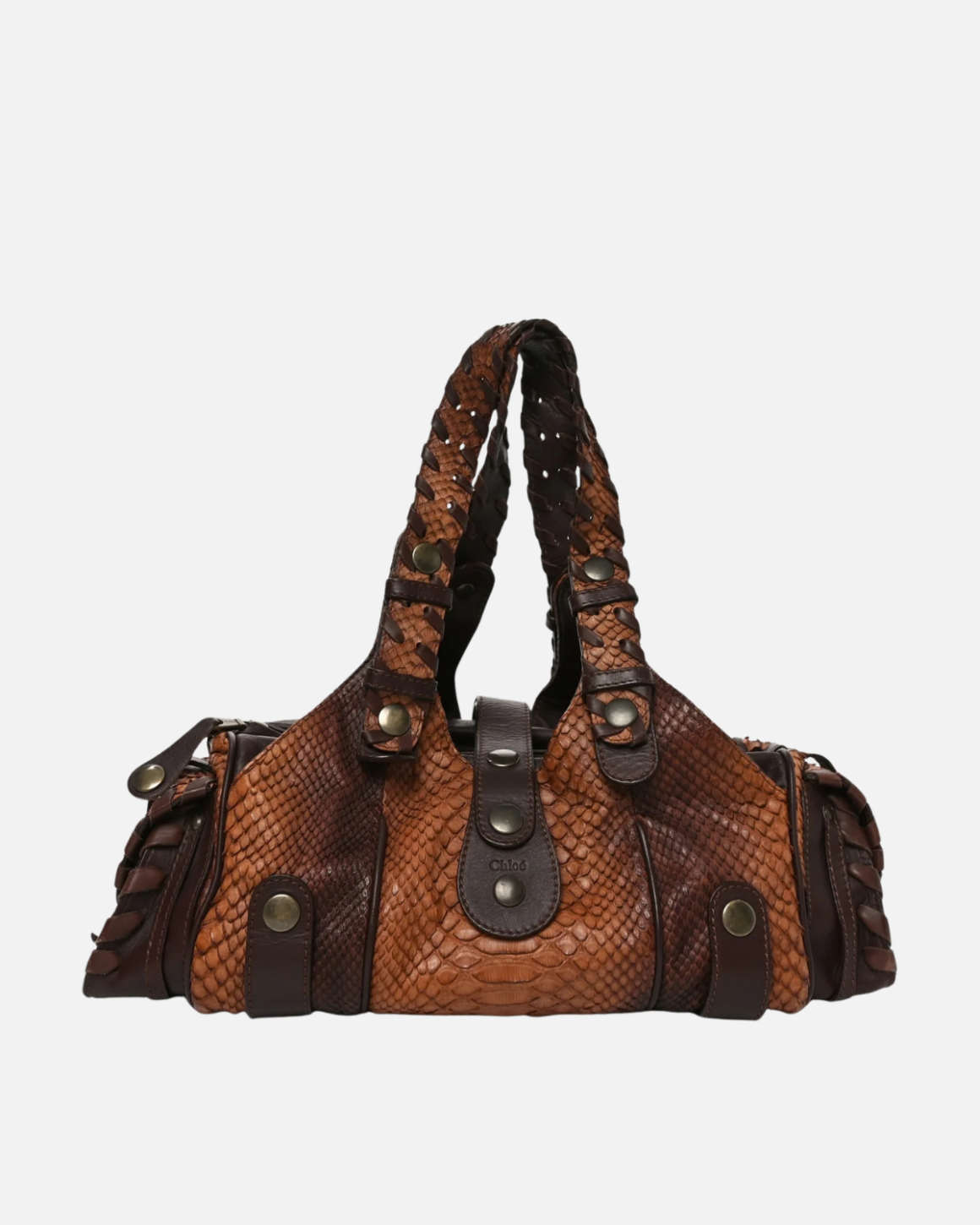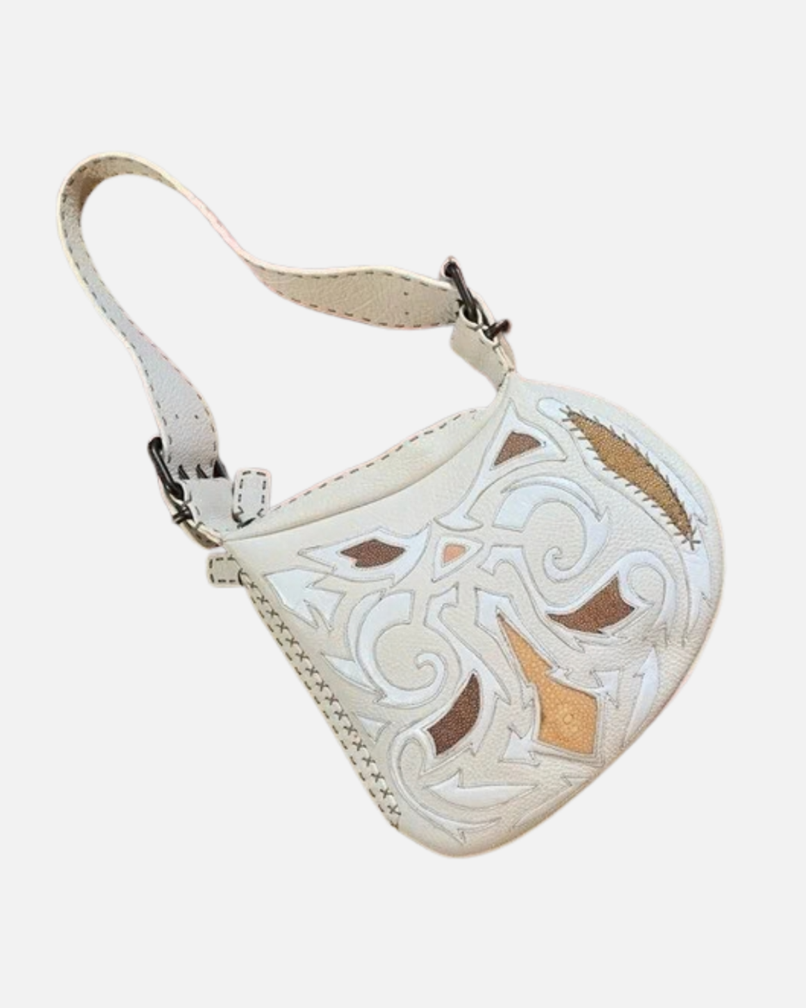 A shoulder bag by design, its long straps and side pockets feature whipstitching details, often in a different color than the body of the bag, and it’s studded with burnished hardware. The ‘70s rockstar of the vintage bag world, it can be sourced in various materials from metallic leathers to luxurious pythons.